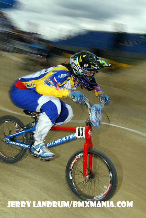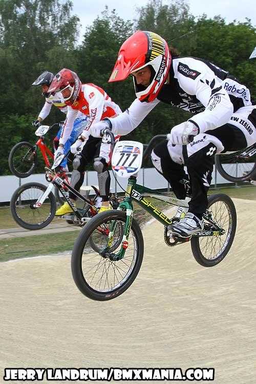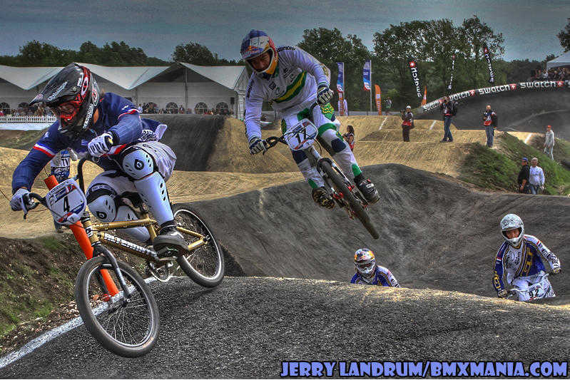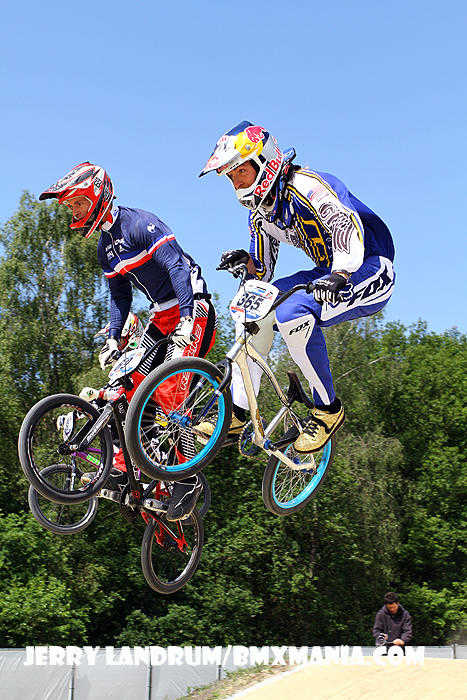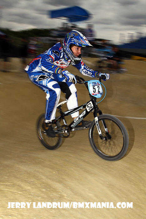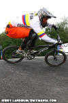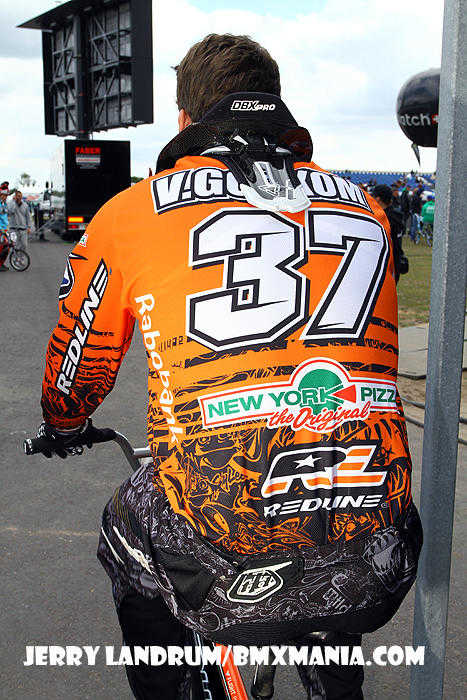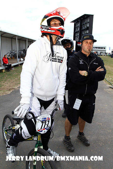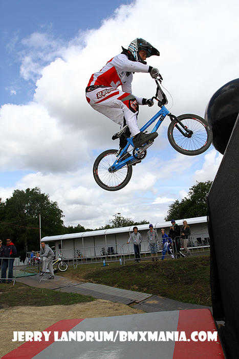 | GT Factory Pro, Mike Day has been on a nice easy going 'comeback' in '11 from major back surgery which nearly ended his BMX racing career after his big Silver Medal performance in the 2008 Olympic Games. In Papendal, #365 was a half second off of making the final, after a good STRONG "Day" of racing through his 1/8ths, 1/4's and in to a tough semi-final on a tough track. |
