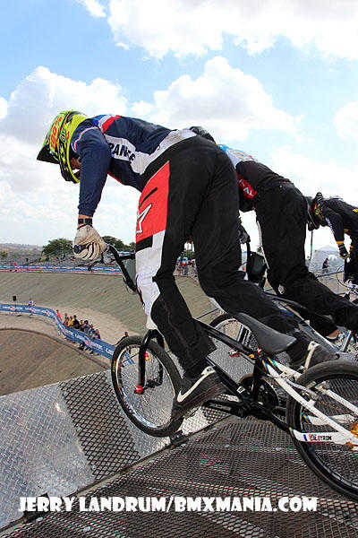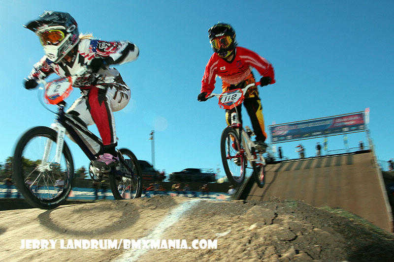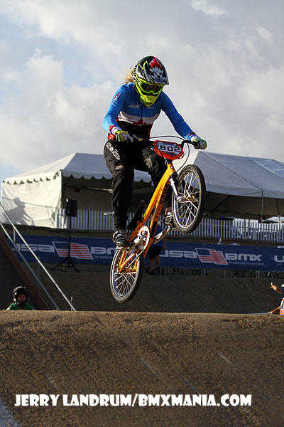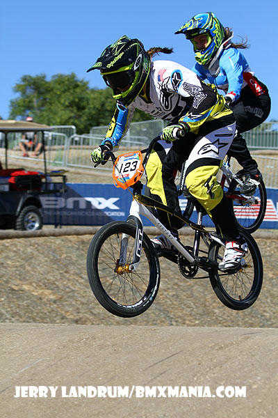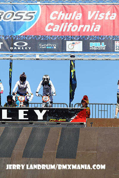 Sam won the race from start to finish with two of the best in pursuit. Willoughby snapped out STRONG with Connor Fields (USA) and Tory Nyhaug (CAN) battlin' down the first straight, but coming out of Turn One, it was Sam with Tory hot on his heels. Hard racing followed, with Tory mounting a charge down the third straight, but Sam ran a perfect lap and took the win. Mariana had to do quite a bit of chasing as Alise Post (USA) RIPPED it out of the gate and was absolutely flying down the first two straights. Coming in to the huge rhythm section in the third straight, Mariana applied her bike handling skills and made up several bike lengths, with a resulting very slight lead going in to the last turn to take the win at the finish line. |