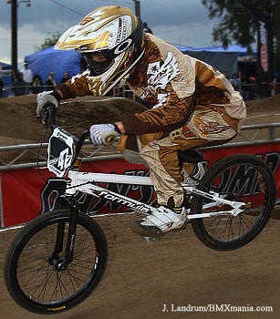 A Pros - Tyler Faoro and Gavin Lubbe started the weekend off racing in the Elite Pro UCI race. With 8 racks of Elite Men the room for error was minimal. Tyler made it through the motos with ease and was poised to transfer out of his quarter but was pushed off the top of turn one taking out the NBC cameraman. Little did he know that the cameraman in turn one was motocross superstar James Stewart’s dad.