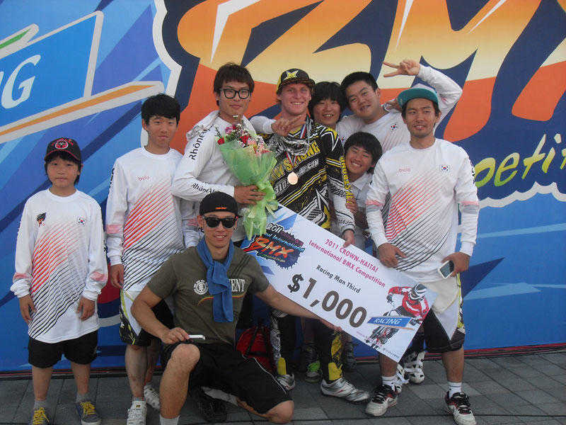 Joey Bradford has had a tough Winter, with losing his long time sponsorship with the GT Factory Team last Fall, then at the ABA Grands, he suffered a really bad injury that put him Out Of Action for six months. During his recuperation time, Joey got busy and found a hot new sponsor in Prophecy BMX and has been training like a crazy man, and it showed BIG TIME in his first race back. Joey flew to Korea last week and came home the winner of the second annual Crown-Haitai International Race in Seoul! Most of the best Elite BMX riders were invited to this race which was broadcast live on ESPN Korea to try to fight to get the big prize money of $6000 for the winner…. Even if the track was a little different than we're used to seeing, all the riders said it was a fun time and all who attended put on a great race…and got to help show what BMX is all about to the Korean public who were coming to see these great riders. During the main event Edzus Treimanis took the lead, but Joey waited to the last turn to make a great move and passed Edzus to win the BIG MONEY!!!! A great win for a rider who just got back from a long injury…and a great win for the Prophecy BMX Carbon Scud Frame!!!! (www.prophecy-bmx.com).