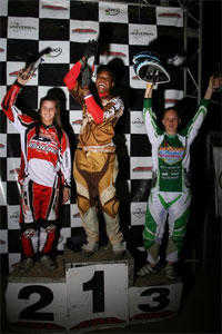 Elite Women went down like this, Dominating Dominique Daniels continued her win streak at Desoto TX. for the 2009 season. Dominique took the win both  both days with Redline's Alise Post keeping here honest. Alise was wowing the crowd with her jumping skills down the second straight, but Dominique showcased her raw power down the first straight. It was a pretty good battle to watch for the fans. RaceplaceBMX and BAWLS Guarana rider Stephanie Barragan brought home a solid third for the event.