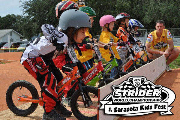 A Weekend of Championship Racing and Family Fun October 12th through 15th At The Sarasota BMX Park and The Helmsley Sandcastle Hotel Rapid City, SD (September 26, 2012) — Strider Sports International, developer of the patented STRIDER™ No-Pedal Balance Bikes, is bringing toddlers from around the world together for the Strider World Championship and Sarasota Kids Fest in Sarasota, Florida USA on the weekend of October 12-15, 2012 for four days of adventure on two wheels and off. This pinnacle race event will be held in beautiful Sarasota, Florida at the Sarasota BMX Track, 1590 North Tuttle Avenue, Sarasota, Florida and will showcase the skills of STRIDER enthusiasts from both America and abroad. The Strider World Championship is an annual racing event that brings together STRIDER riders and their families from all over the globe for the culmination of all Strider Racing and fun family events. This year’s festivities will also include on-site entertainment by the Radio Disney Road Crew. Come join in the camaraderie and good times. The Strider World Championship on Saturday, October 13th will feature 2, 3, 4 and 5-year-old racers from North America, Asia, Europe, and South America. Racers can qualify and get extra track time before the big race by attending Friday’s (October 12) Last Chance Qualifying practice to become eligible for the World Championship being held the next day. Every racer will earn a medal for participation in the race and the top eight finishers in each age group will be awarded trophies during a finish line podium ceremony. At the end, there will be lots of big smiles, and the 2-year-old, 3-year-old, 4-year-old and 5-year-old World Champions will be crowned. The toddler trophy ceremonies are always a treat for camera-clicking parents. The race entry fee is $25 for both the Championship and Last Chance Qualifier during pre-registration. The cost is $25 for the Championship and $10 for the Last Chance Qualifier for registration at the event. All participants will receive a goodie bag valued at over $50! Registration is limited to the first 200 racers. For more information or to pre-register, visit http://www.striderworldchampionship.com. In addition to world championship racing, bring the whole crew to the Sarasota Kids Fest, which will include the Free Strider Adventure Zone, which is a safe and fun STRIDER bike test ride area for children 18 months to 5 years of age. There will be free loaner bikes and helmets provided at the Adventure Zone both days. Additional events that weekend include the STRIDER beach parade and an outing to the new Payne Park, the region’s newest playground and skate park. The luxurious Helmsley Sandcastle Hotel will be hosting the World Championship guests. Located directly on Sarasota's world-renowned beaches, the Helmsley Sandcastle Hotel and Strider have teamed up to offer beachfront rooms, multiple swimming pools, free evening child care and open-air trolley rides to shuttle riders and family between the hotel and the track on both days. Special Strider rates start at $99 per night for families up to five. Rooms are limited so book your room early and mention "Strider World Championship" to receive your discount. For hotel details, visit http://www.HelmsleySandcastle.com. “The Strider World Championship has quickly turned into the signature annual event for Strider Sports,” states Strider Inventor and CEO Ryan McFarland. “We always believed the STRIDER was special in the way it taught toddlers how to ride a bike. Now with Strider Racing and the Strider World Championship, we see children as young as two years old developing sportsmanship and other valuable skills while riding and competing on two wheels. The second World Championship promises to build on last year’s success. We are again grateful to all our partners and Sarasota County for helping us culminate the season in true Strider style — fun in the sun!” “Sarasota is proud to host the 2012 Strider World Championship," said Carolyn Brown, Sarasota County Parks and Recreation General Manager. "Sarasota is well-poised to host an exciting weekend of Strider family fun with America’s number one beach, a vibrant downtown, and the first purpose-built, ‘no-pedal’ BMX race track in the country.” Special thanks to our partners: Suncoast Charities For Children (www.suncoastcharitiesforchildren.org) ..... Sarasota County Sports Commission (www.sarasotafl.org) ..... Helmsley Sandcastle Hotel (www.helmsleysandcastle.com) ..... USA BMX (www.usabmx.com), and Sarasota BMX (www.sarasotabmx.com). |