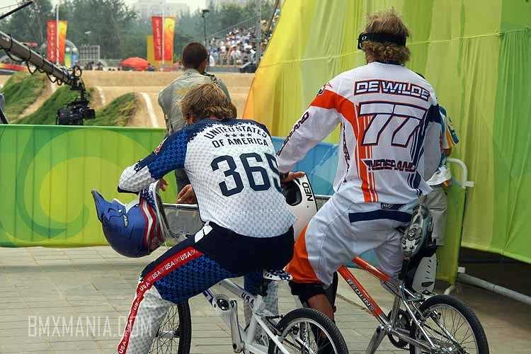 Tuesday afternoon, and it's HOT in Beijing. You got your two rounds of practice, the day before the competition begins at the first ever BMX Event in the Olympics. First round of practice, it's pretty hot, but earlier in the morning, everybody's GUNNIN' it! Second round of practice, six guys show up because most people take the afternoon off to get a much needed rest time.