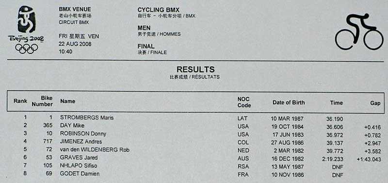 In the end, BMX’s first Olympic Gold medal went to Latvian Maris Strombergs, with USA favorite Mikey Day claiming silver and Donny Robinson scoring bronze.