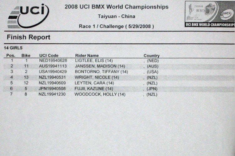 15 Girls - 1 Melinda McCleod/AUS 2 Tori Van de Perre/BEL 3 Lacey Oliver/AUS 4 Enora Le Roux/FRA