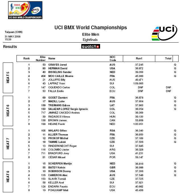 Elite Men's Quarter Finals | Junior Men's Quarter Finals | Elite Men's Eighth Finals 1-4 | Elite Men's Eighth Finals 5-8 |