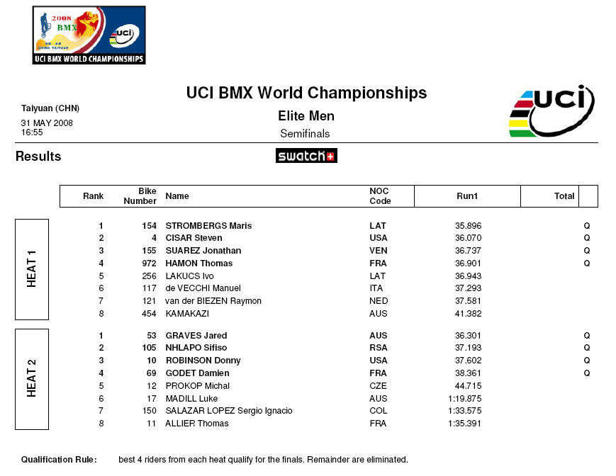 | Elite Men's Cruiser Semi Finals | Elite Men's Cruiser Quarter Finals | Elite Women's Cruiser Qualifying | Junior Men's Cruiser Semi Finals | Junior Men's Cruiser Qualifying | Junior Women's Cruiser Qualifying |